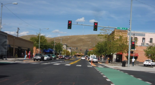 Intersection crossing markings were discussed extensively at Bike Delaware’s recent discussion of 2012 priorities. In Delaware, 90% of roads and streets are are controlled by DelDOT and DelDOT’s version of the MUTCD. Unfortunately, however, at the present time the Delaware MUTCD does not include any intersection crossing markings for bicyclists. In order to bring this pavement parking to Delaware, it will need to be added to the Delaware MUTCD.